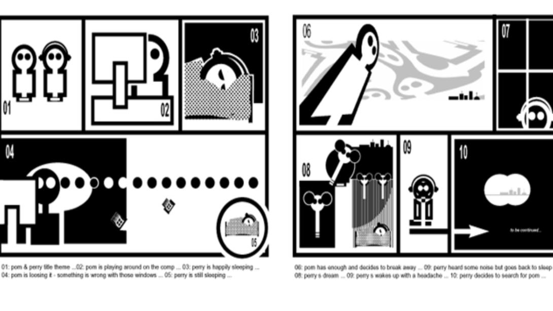 This is the first episode of an ongoing mini-drama-audiofiction-CDR-serial, focussing on the adventures of the two main authors/protagonists "pom & perry". The CD comes along with a comic-booklet. Each image is referring to one track.